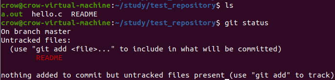 - README파일이 Untracked files에 속해 있음을 알 수 있다.
