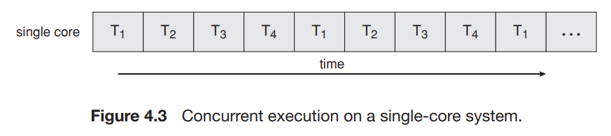 - 다중 스레드는 멀티 코어 시스템에서 처리 능력을 향상시키도록 설계될 수 있다.