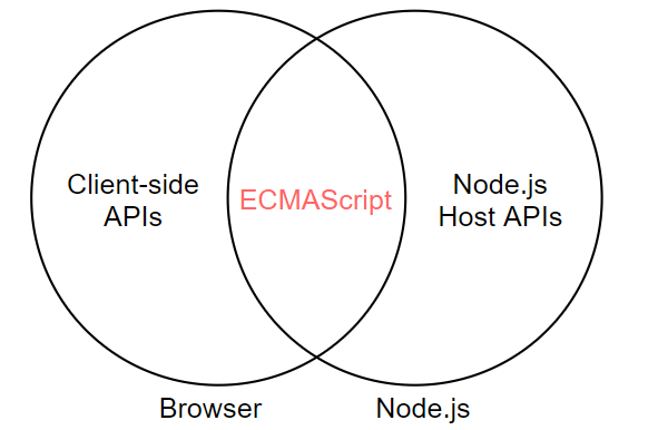 - 브라우저와 Node.js모두 JS의 core인 ECMAScript를 실행할 수 있지만 이외에 추가로 제공하는 기능은 호환되지 않는다.