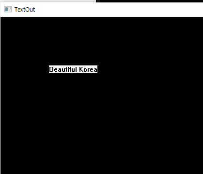 TextOut(hdc, 100, 100, TEXT("Beautiful Korea"), 15);