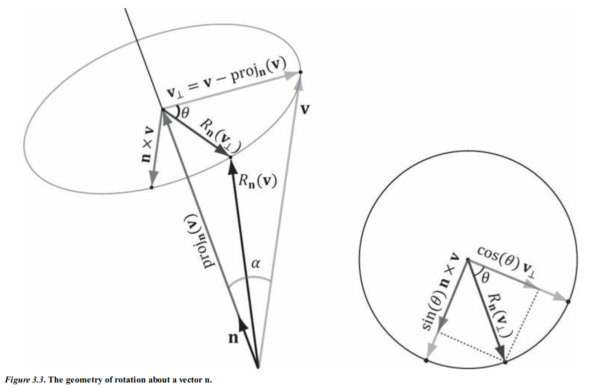 벡터 $\mathbb v$를 축 $\mathbb n$에 대해 회전하는 선형변환을 살펴본다.
