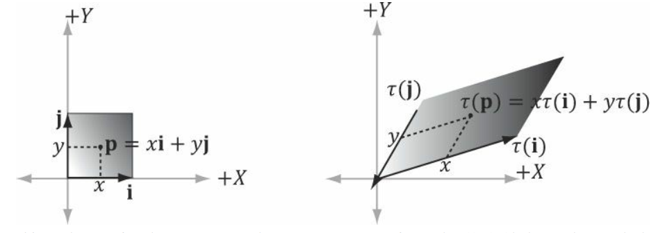 축 $i$와 $j$가 변형될경우, $\tau(i)$와 $\tau(j)$에 대해 점 $p$도 변형되어 $\tau(p)$에 위치하게 된다.