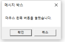 위 코드를 실행하여 나온 window 창에서 좌클릭을 하면 아래와 같은 메시지 박스가 출력된다.