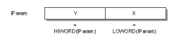 마우스 메시지는 lParam의 상위 워드에 마우스 버튼이 눌러진 y좌표, 하위워드에 x좌표를 가지며 좌표값을 검출해 내기 위해 HIWORD, LOWORD 등의 매크로 함수를 사용한다. 즉 마우스 메시지가 발생한 위치의 좌표는 (LOWORD(lParam), HIWORD(lParam))이 된다.