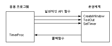 콜백함수가 등록되면 운영체제는 윈도우로 WM_TIMER 메시지를 보내는 대신 이 함수를 주기적으로 호출한다.