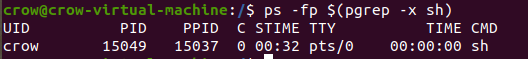 터미널 2에서 sh 프로세스의 PID를 확인해본다.