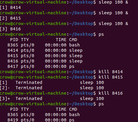 | 명령 | sleep 100 & | 백그라운드로 실행 중인 명령이다. |