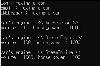 Car(make_unique<SteamEngine>(1000, 100), make_shared<SMSLogger>())