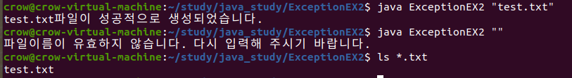 이전 예제와는 달리 createFile을 호출한 main에서 직접 예외를 처리하도록 하였다.
