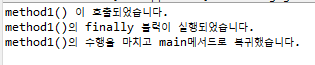 System.out.println("method1()의 finally 블럭이 실행되었습니다.");