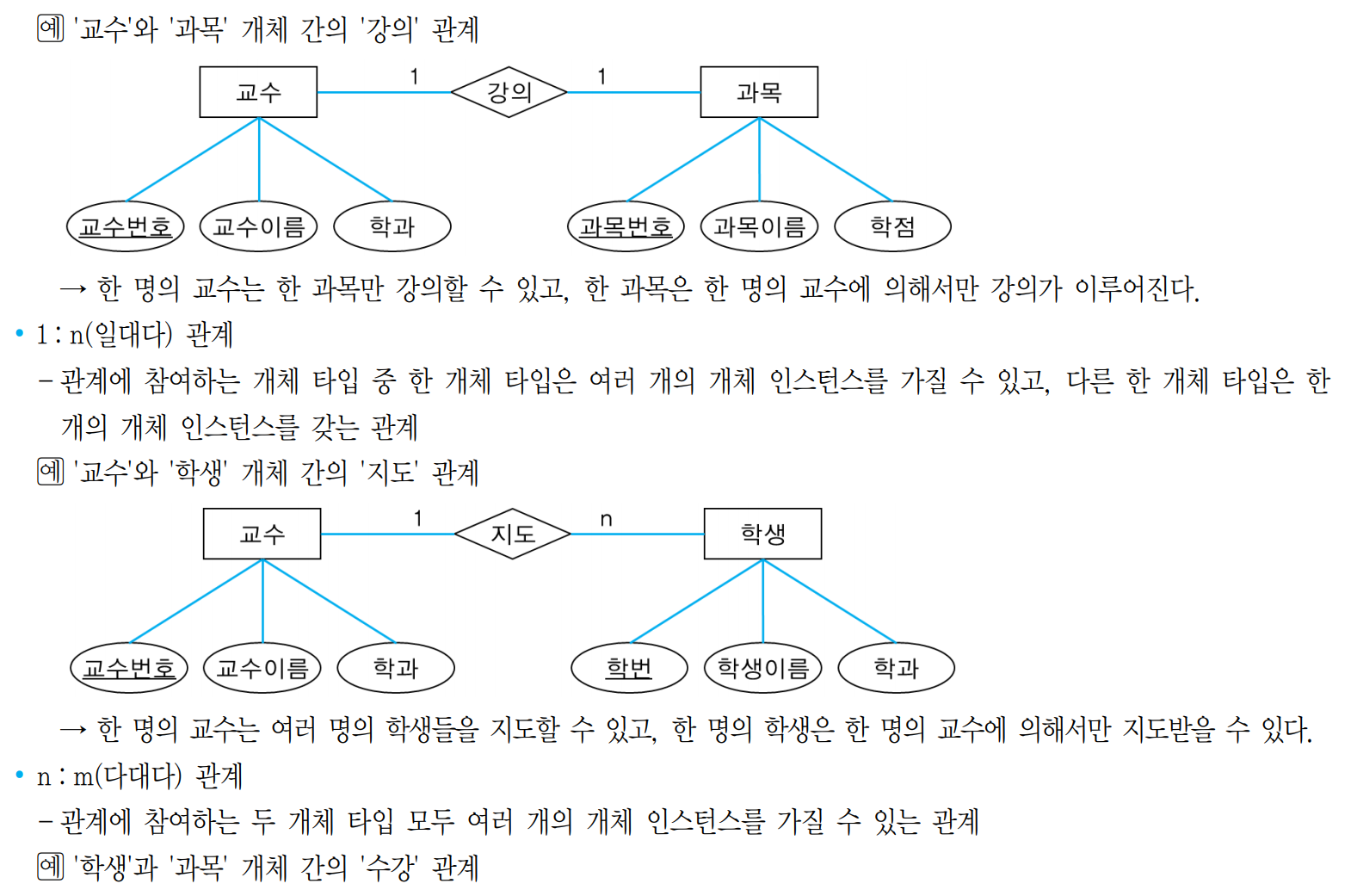 - 구조(structure) : DB에 표현될 대상, 개체 타입간의 관계를 기술
