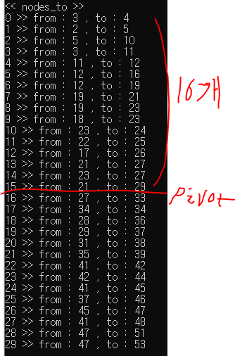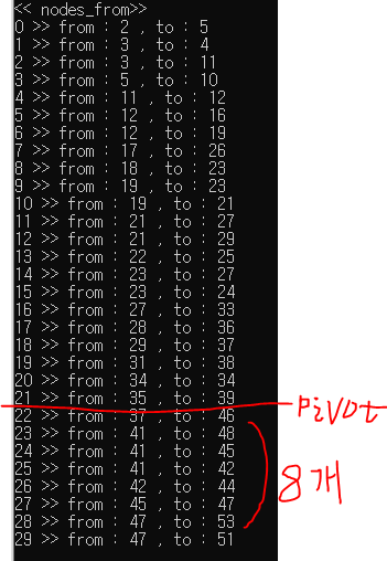 - nodes_to 에서 기준 트래픽의 시작점을 기준으로 왼쪽으로 분류된 데이터들을 구한다.