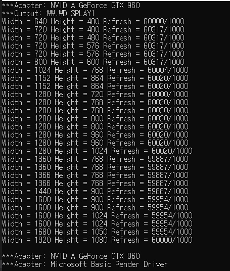 LogOutputDisplayModes(output, DXGI_FORMAT_B8G8R8A8_UNORM);