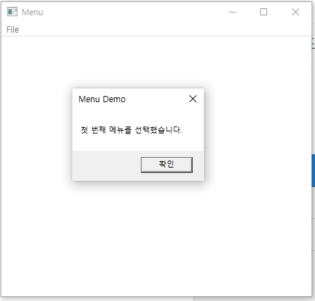 MessageBox(hWnd, TEXT("첫 번째 메뉴를 선택했습니다."), TEXT("Menu Demo"), MB_OK);