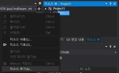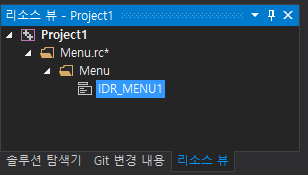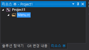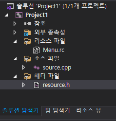 솔루션 탐색기 툴바에서 Menu.rc와 resource.h가 추가되었으며