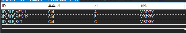 - 엑셀러레이터 편집기를 통해 각 항목에 대응되는 단축키를 설정 가능하다.