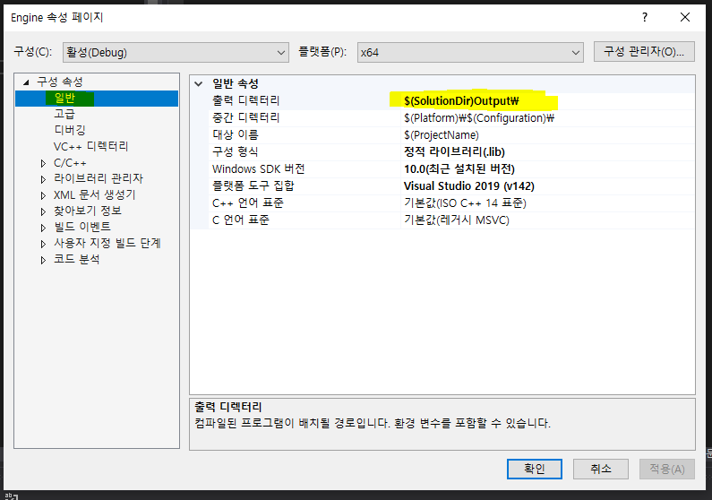 빌드 결과물들이 저장될 디렉토리를 구성속성 $\rightarrow$ 일반 $\rightarrow$ 출력 디렉토리에 설정하면 된다.