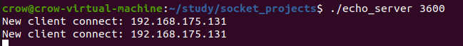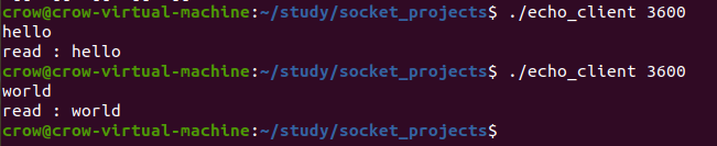 각 클라이언트와 서버의 프로그램 이름이 echo_client, echo_server 이며, 아래처럼 실행해보면