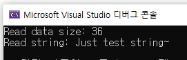 data.txt 라는 파일을 새로 생성하여, Just test string~ 이라는 문자열을 파일에 쓰고 닫는 프로그램이다.