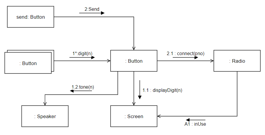 Button은 dialer에 눌러진 버튼의 정보를 받아 핸드폰 내의 여러 모듈에 전송하는 것 이외에 여러 역할을 가진다. (전화기의 ON/OFF 스위치나 메뉴 버튼, 다른 제어 버튼을 제어...) 만약 위 코드처럼 button이 눌려질때마다 dialer의 함수를 호출하는것과 같은 형태를 띄고있다면 다른 용도에 이 Button의 코드를 재사용하지 못한다. 실제로 우리는 숫자 버튼 이외에, send 버튼을 구현을 button을 상속받는 방식으로 구현했는데, 모든 종류의 버튼에 대해 이런식으로 디자인하기에는 상당히 번거로울 것이다.
