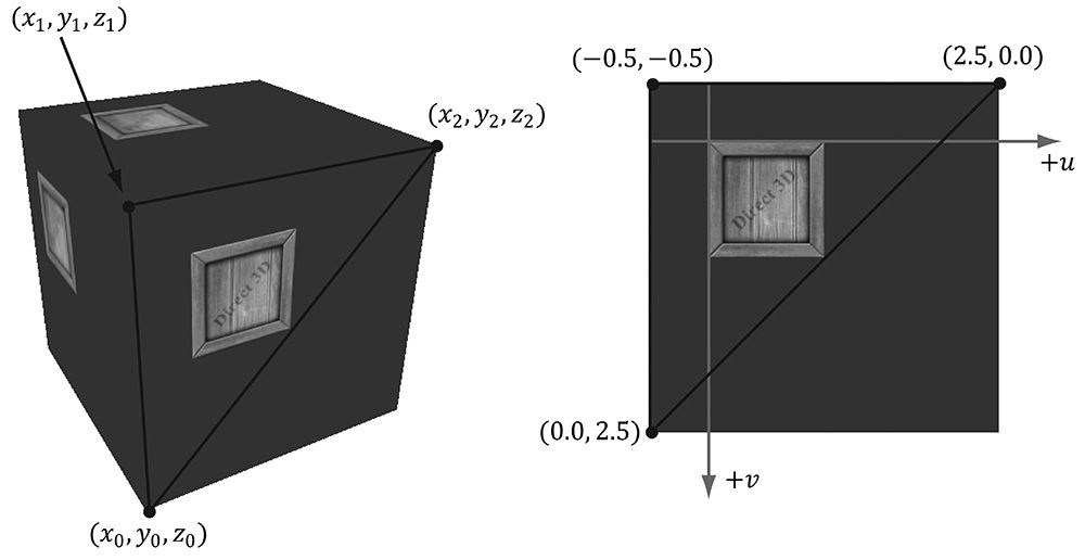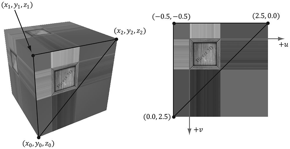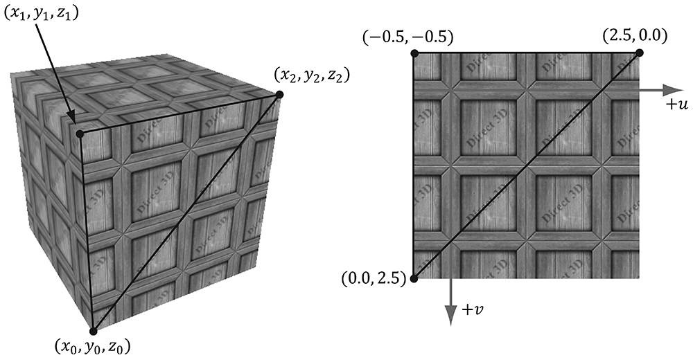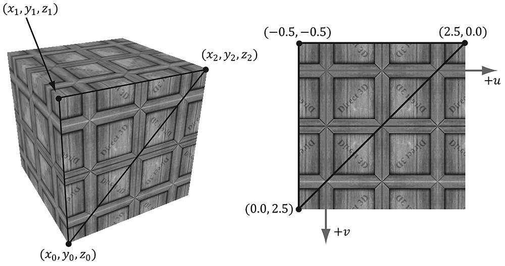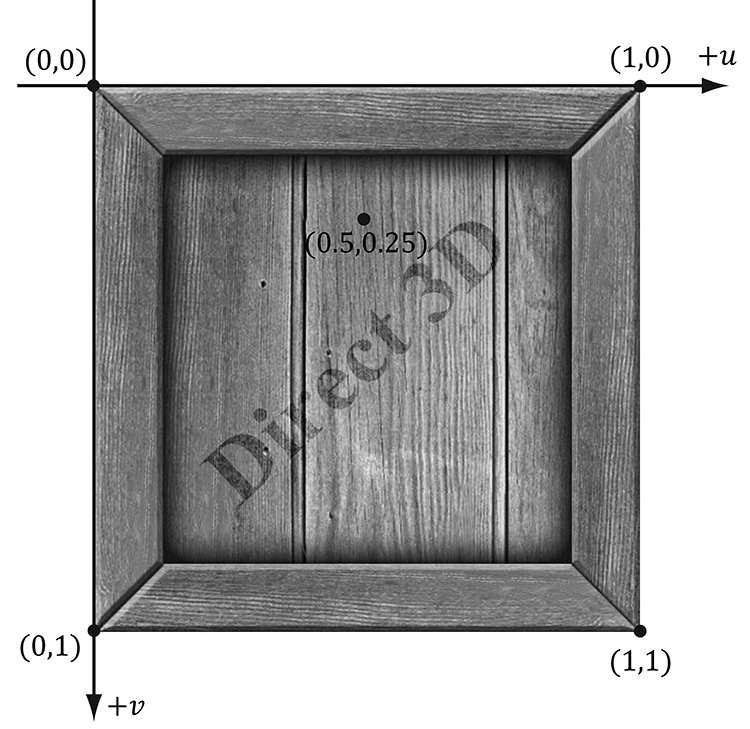 Direct3D는 $u$축이 가로방향이고 $v$축이 세로방향인 텍스처 좌표계를 사용한다.