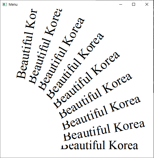 CreateFont의 세번째 인수인 nEscapement를 변경하면 문자열이 출력되는 각도를 바꿀 수 있다.