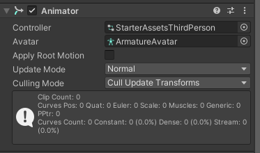 유니티 상에서 애니메이션 재생이 직접 반영될 아바타 정보가 필요하다.