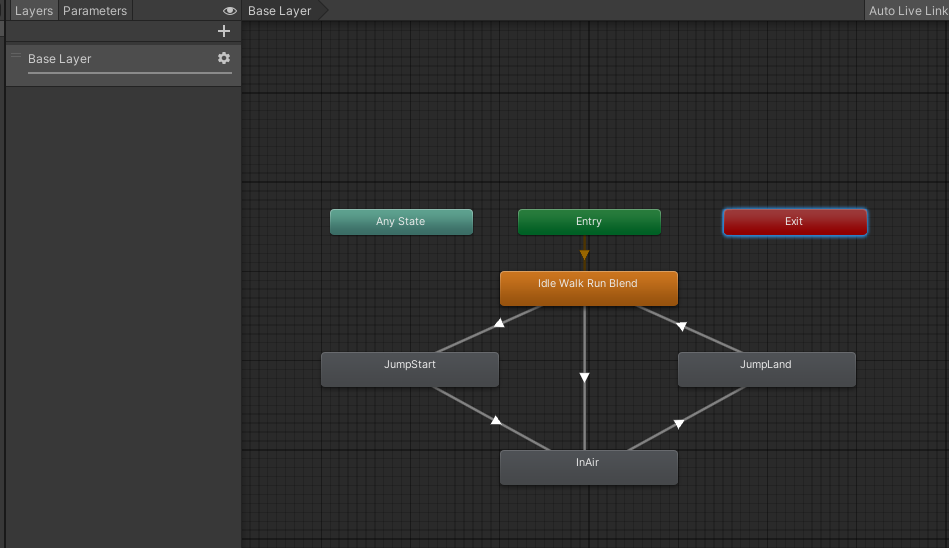 위 처럼 Speed 파라미터의 값에 따라 Idle, Walk, Run 세가지 애니메이션을 적절히 조합할 수 있다.