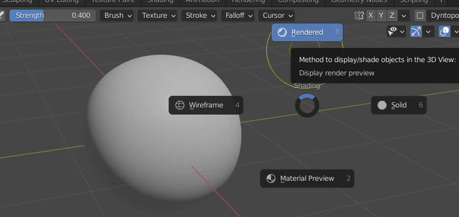 단축키 Z를 누르면 여러가지 뷰포트 모드가 나오며, 그 중 Rendered 를 선택한다.