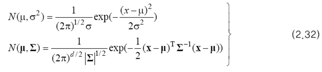 - 평균$\mu$과 분산$\sigma^2$이라는 2개의 매개변수로 확률분포가 표현된다. 즉, 훈련집합으로 정규분포를 추정할때는 평균과 분산만 찾으면 된다.