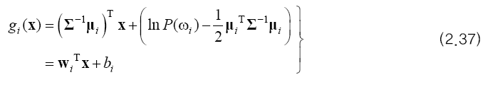결국 분별함수 $g_i(x)$는 1차식이 된다.
